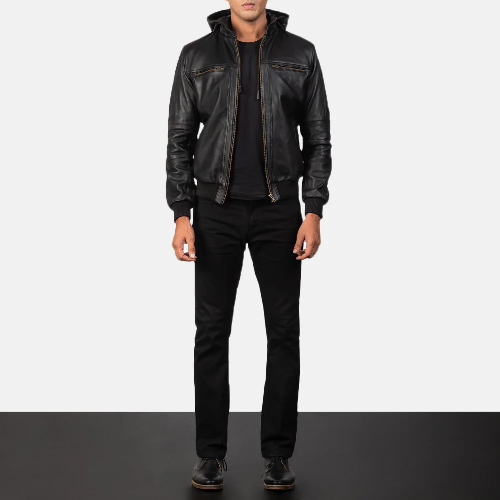 Bouncer Biz Black Leather Bomber Jacket