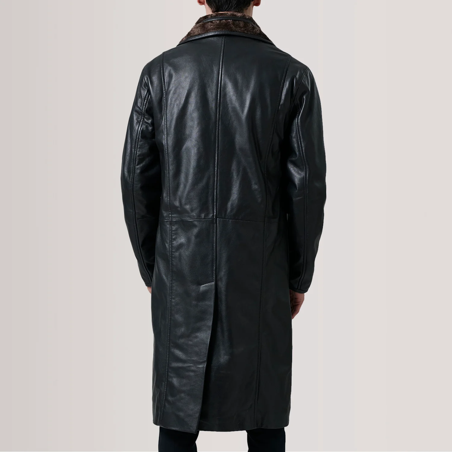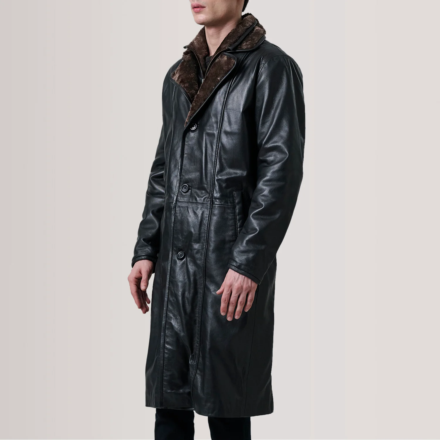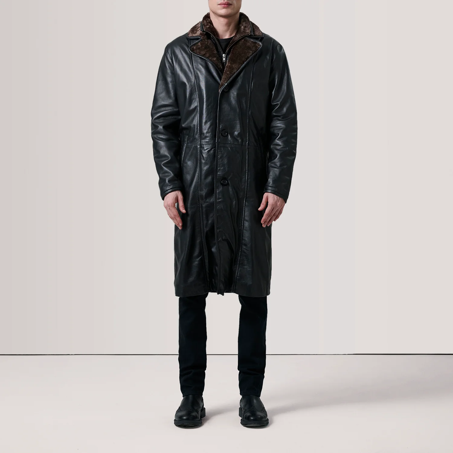 Cai Black Leather Shearling Coat